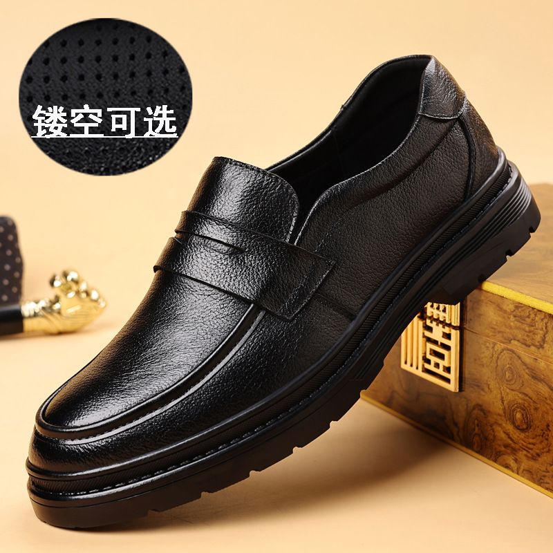 Top Layer Sheepskin Men's Business Casual Shoes Thick Sole Round Toe Slip-On Fashion Versatile Trendy Driving Loafers