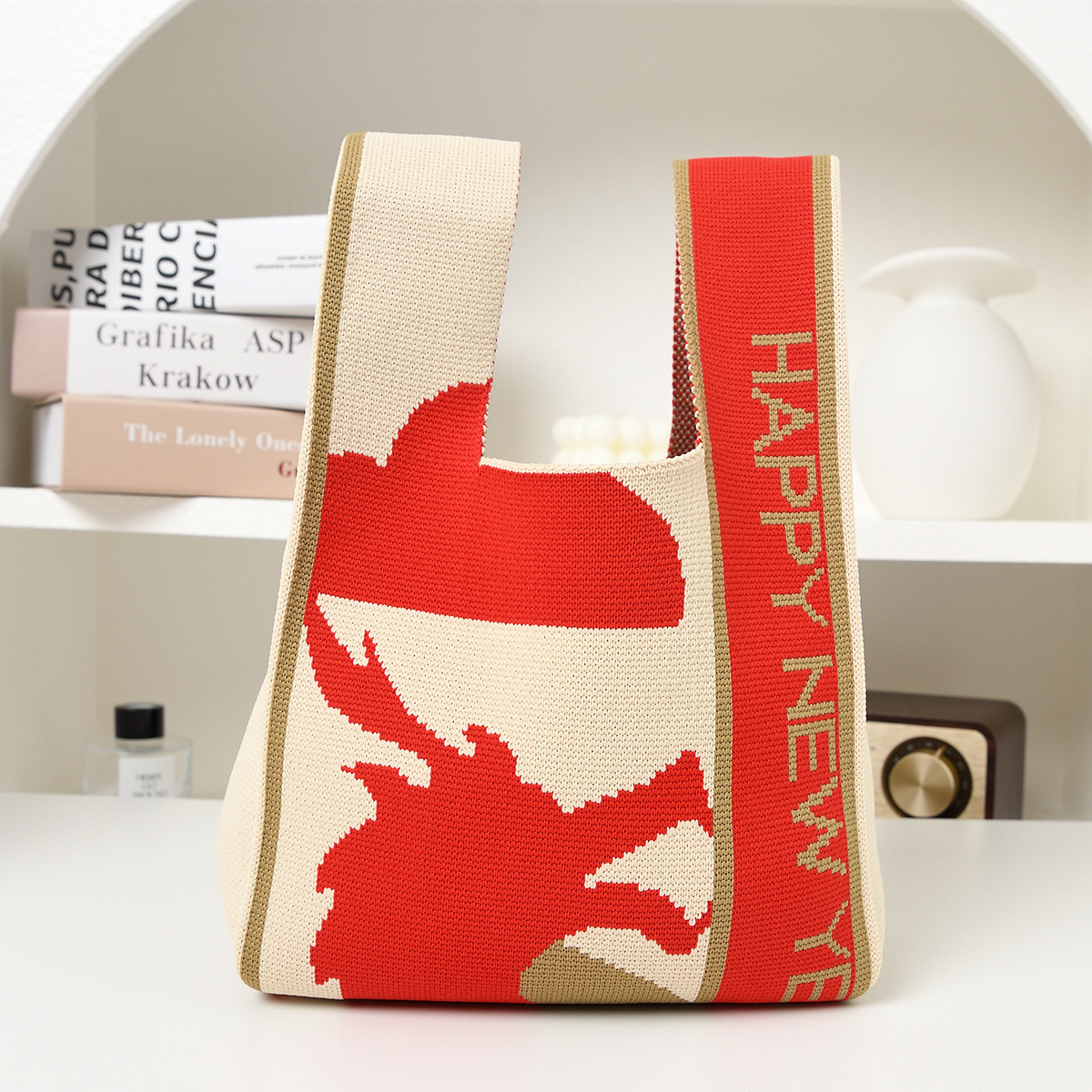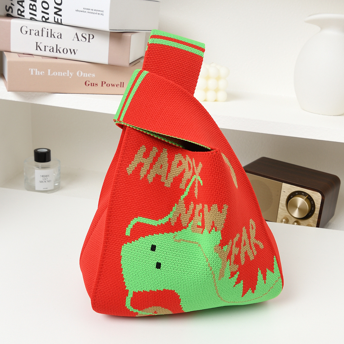 The Year of the Loong Lucky New Year Gift Knitted Bag Female Korean Version Versatile Street Red Handbag Armpit Tote Bag