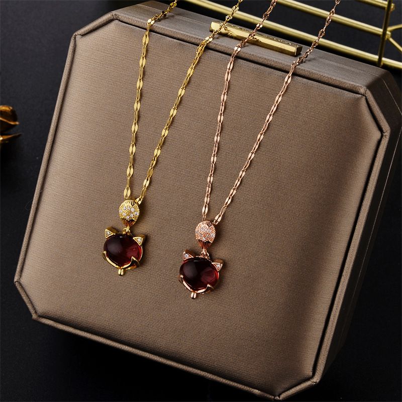 Tiktok Net Red Jewelry Cat's Eye Stone Fox Pendant Fashion Collar Chain Titanium Steel Necklace Women's Diamond Sweater Chain
