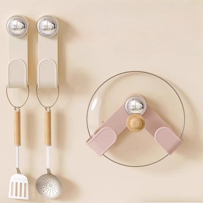 Topfdeckelhalter, Creme-Saugnapf, drehbarer, wandmontierter, nicht stanzender Küchenhalter, Aufbewahrungsbügel, Schneidebretthalter, Schneidebretthalter