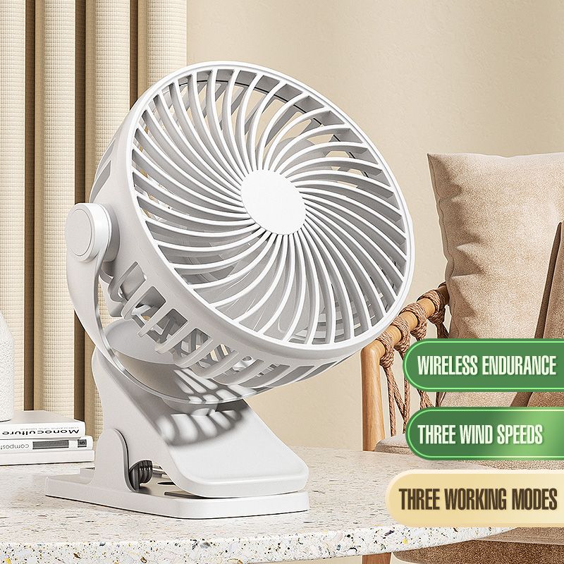 Portable Clip-on Electric Fan, Small Electric Fan, Suitable for Home and Office, Outdoor Office Desk, Large Capacity USB Charging