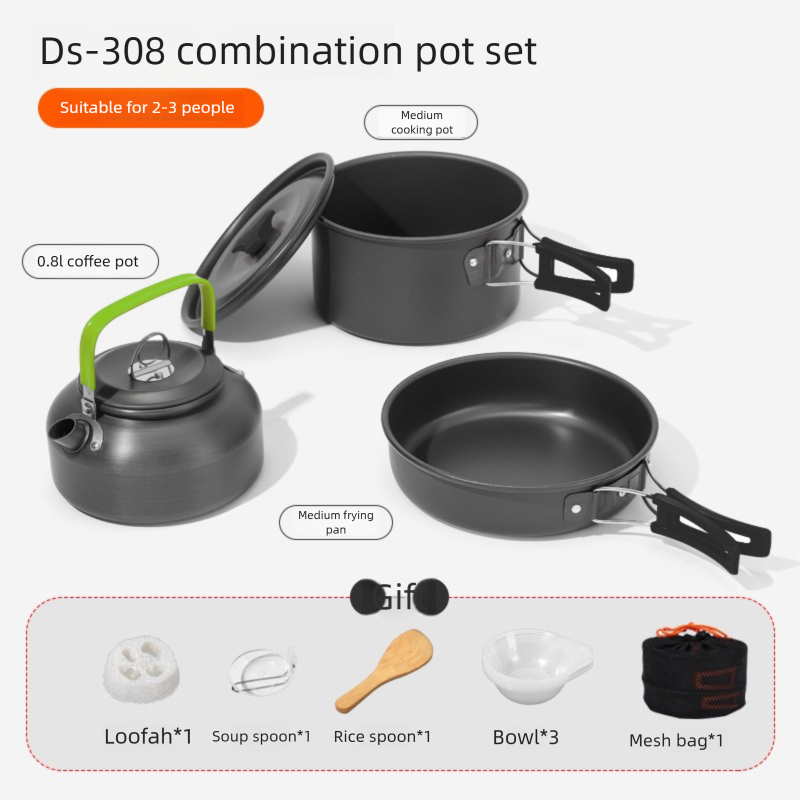 Tragbares Camping-Picknick-Teekannen-Kombinationsset für den Außenbereich für 2–3 Personen mit Geschirr DS-308