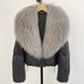 Trendige kurze Pufferjacke für Damen mit Kaninchenfellkragen, 85% weiße Entendaunen, übergroßer Wintermantel (S/M)