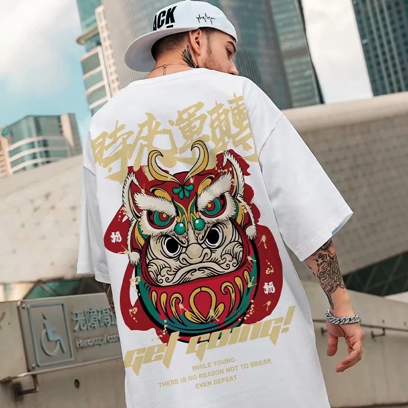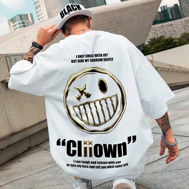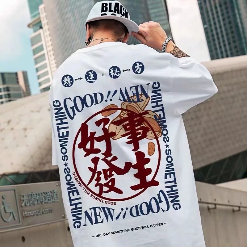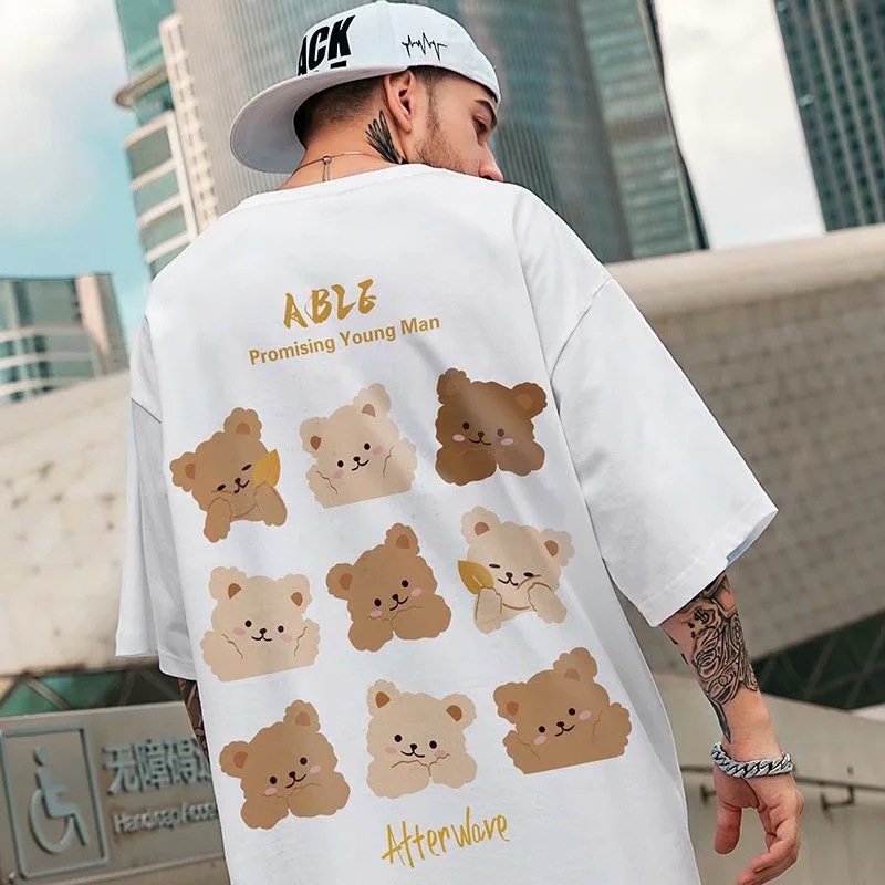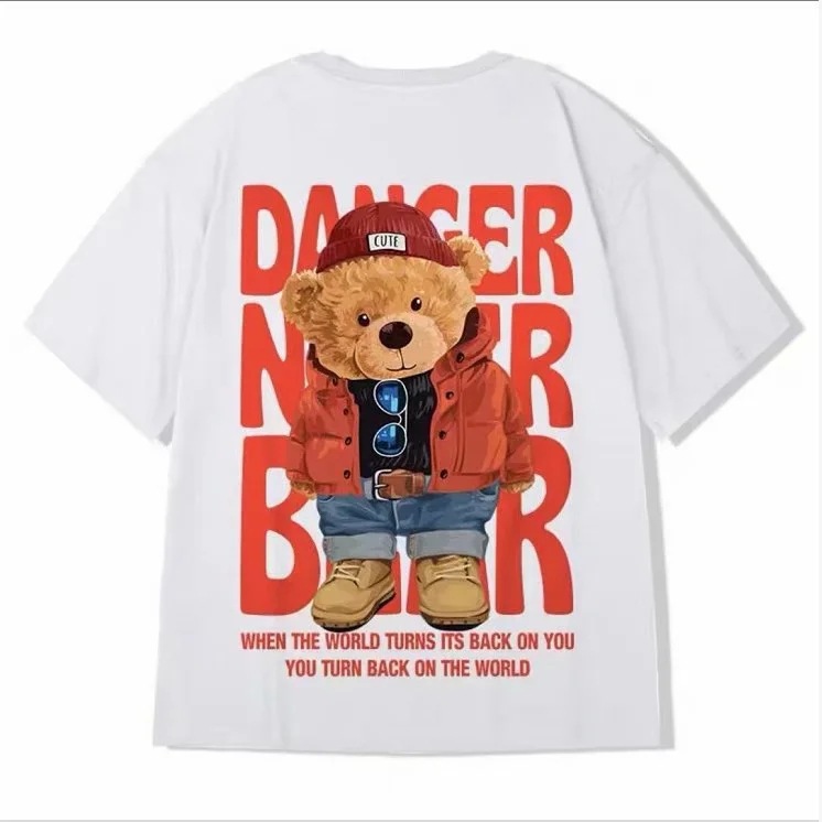 Trendy brand short sleeved T-shirt, loose little bear pullover for couples, chubby and oversized men's clothing, summer trend