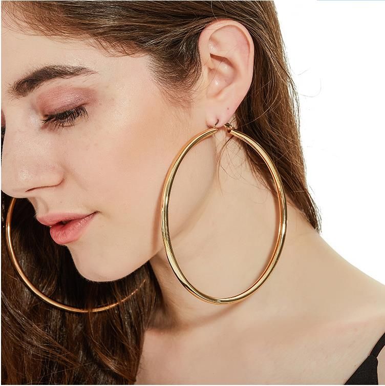 Trendy Big Hip Hop Punk Creolen 18 Karat Echtgold Überzogen Elegante 11 CM Super Größere Größe Mode Custome Schmuck
