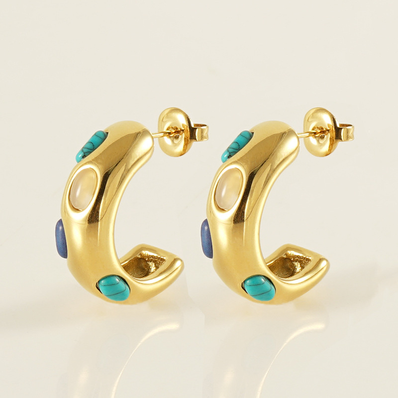 Trendy Simple New Titanium Steel Gold Inlaid Turquoise Earrings High-End Niche Design Ear Jewelry