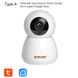 Model:KL-IP622 Features: 1. Support App : Tuya Smart or Smart Life 2. A,B two options: Type A Tuya: Can work with Tuya or Smart Life App, but not support to k with Alexa and Google Home devices. Type B Tuya Google Alexa: Can work with Tuya or Smart Life App, also compatible with Alexa and Google Home, then the camera video can be displayed in google home / alexa devicesscreen simply via voice control. Can control all types of WIFI smart home devices including smart socket, lamp, Electric curtain, IP cameras, Alarm systems, Water leak detector, detector, Garage door controller, WIFI video doorbell, Smart lock, IR remote etc., just by ONE APP:Tuya smart of smart Life. 1. Voice Control via Alexa Google Home: Note:Type B compatible with Alexa and Google Home: Can voice control the device hi Alexa/google, show me smart camera, then the video will display in the screen olexa/Google Devices like Echo, Google home nest. Note: Type A Tuya 1080p doesnt support it. If you want the function, please choose type B Tuya google Alexa 2. Wide Vision : you can control the camera to rotate as you want . Pan ( Left and Right ): 355 degrees . Tilt  ( Up and Down ) : 120 degrees . 3. Two-Way Audio : Built-in Speaker and Microphone . 4. IR-Cut technology : Switch day/night vision automatically . 5.TF Card storage Supported :Max to support 128GB TF card . The record will overwrite automatically when capacity of TF card is fully taken up. (Please note : The SD Card was not included ). 6. Support to connect with KONLEN NVR recorder via onvif. Note: Although most of NVR in the market can work with our camera, but I still cant 100% make sure all the parameters are compatible well. If you want it to work with yours recorder, youd better to contact us to confirm it before buy in order to avoiding any incompatible problem. Thanks. 6 .You can access to camera and monitor your house remotely. . 7.Easy to configuration : you can down load the application via scanning below QR code or Searching for the app Tuya Smart or Smart Life  ingoogle Play or App store. 1 .Click + to choose security camear to add . 2. you can click otherwise to choose configure way . 3. Click Smart configuration to configure the camera . 4. Choose your Wifi router and enter the password ,the camera will step into configuration process. please keep your cellphone close to camera during configuration process .