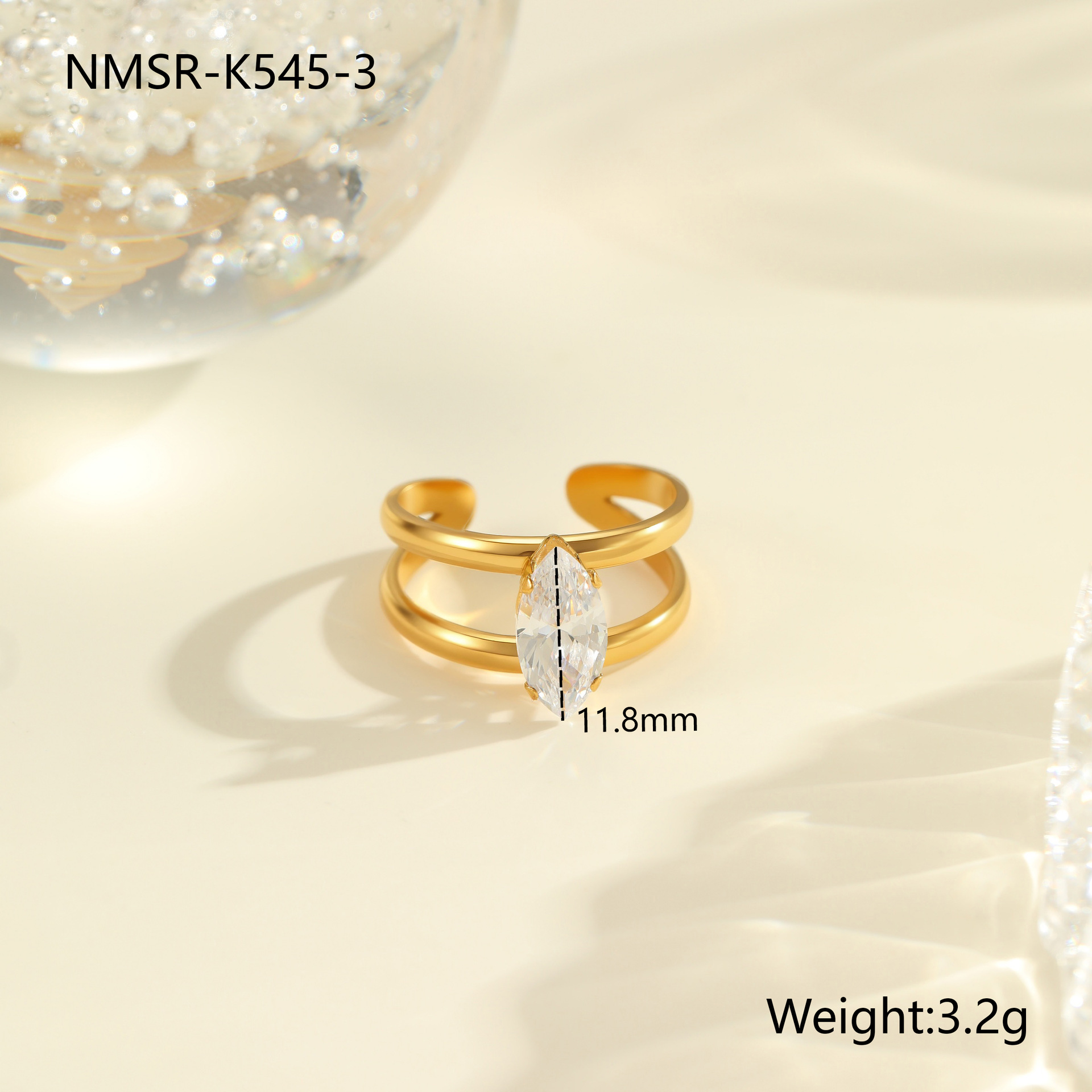 Cross-Border Autumn and Winter New Product Ins Inlaid Zircon Ring Stainless Steel Ring Plated 18K Gold fashion Exquisite Hand Jewelry Wholesale