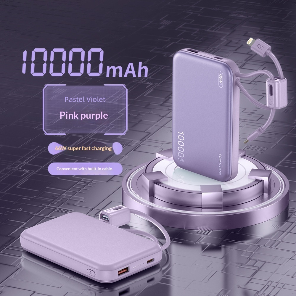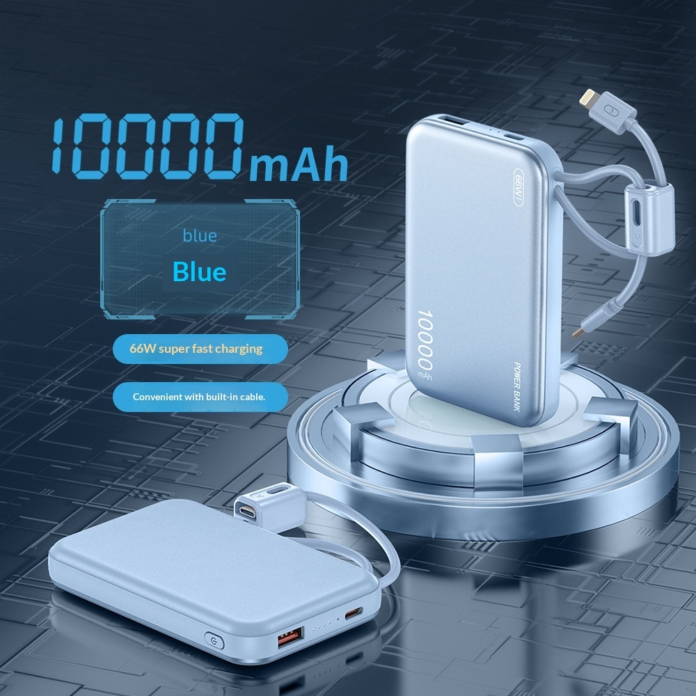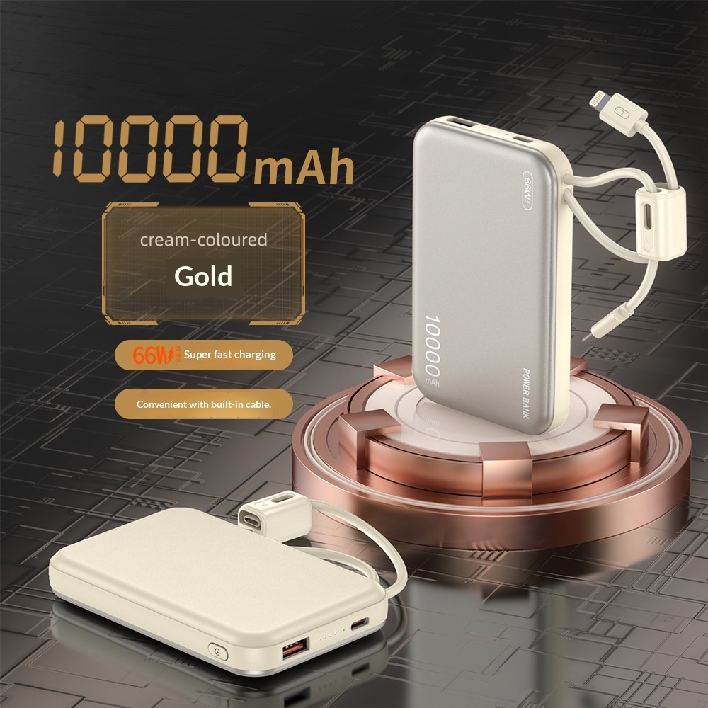 Ultradünne Powerbank mit Trageband und Kabel, 10000 mAh, Mini-Schnellladefunktion, tragbares Ladegerät aus Metall, individuell anpassbar