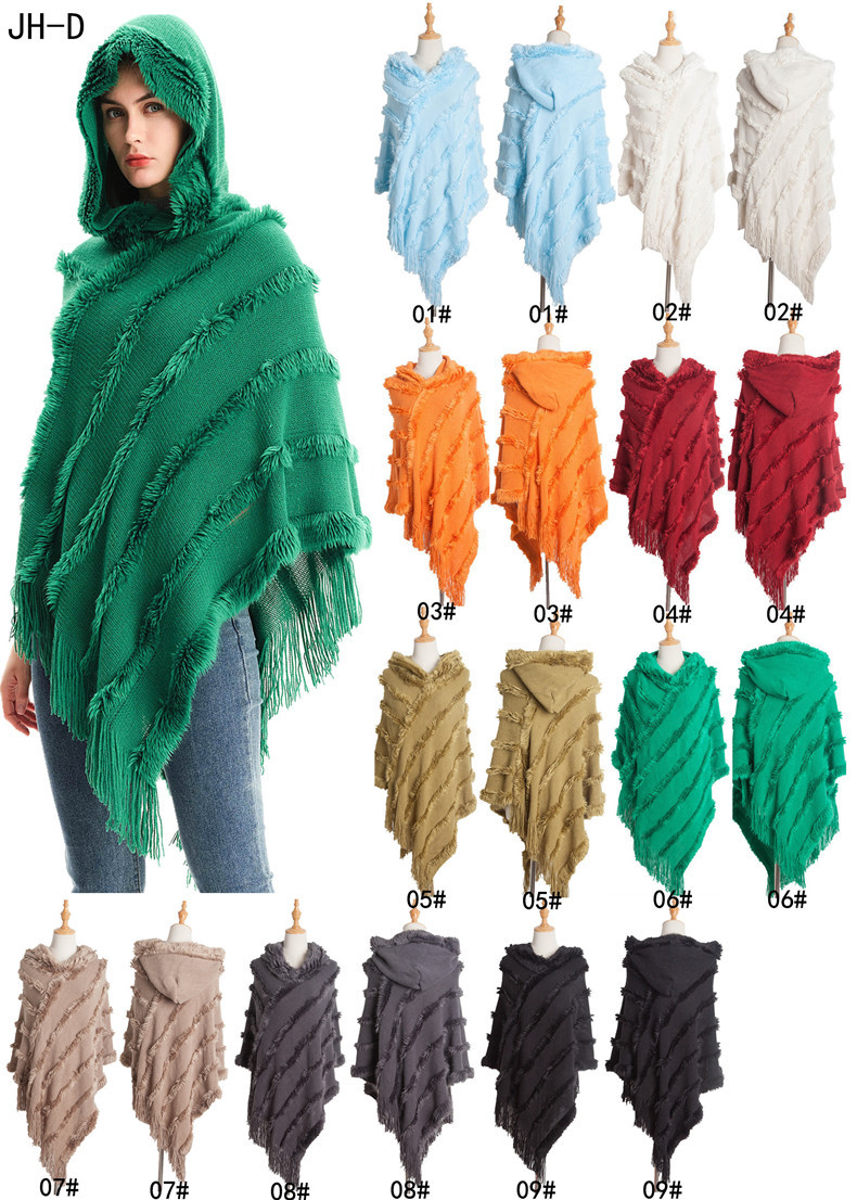 Unisex Damen einfarbiger Kapuzenpullover Strickpullover Cape Umhang
