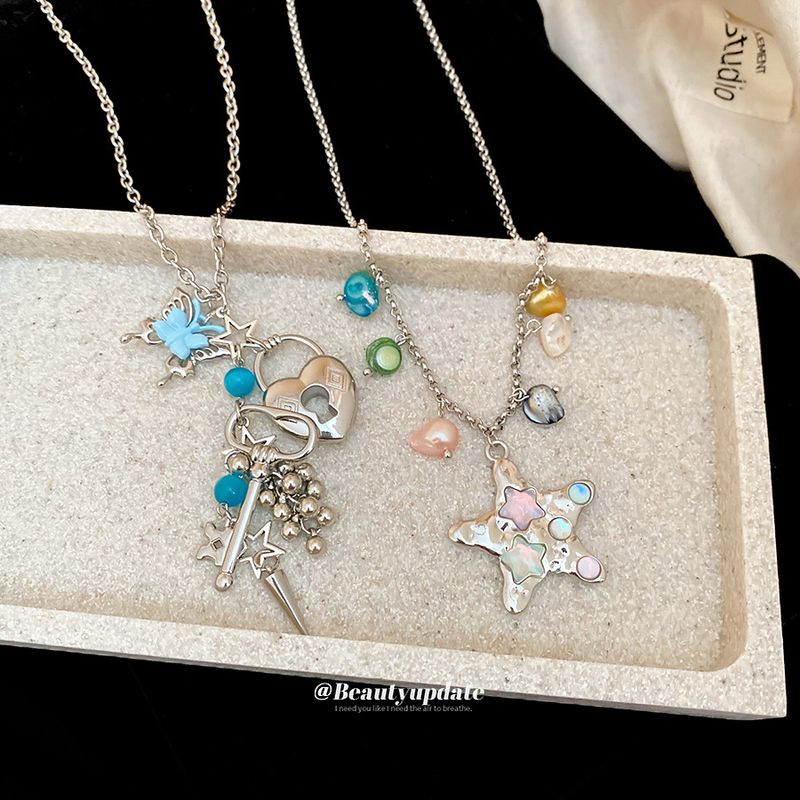 Unregelmäßige Süßwasserperle Seestern Anhänger Halskette Nische Niedlich Elegant Schlüsselbein Mode Pendler Pullover Kette Für