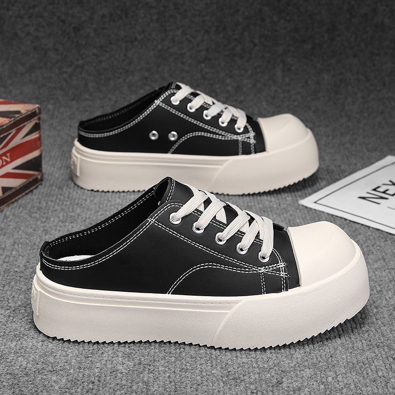 Men's shoes in summer, one step office, no heel, half toe, thick sole, men's casual leather, sports board shoes, men's shoes