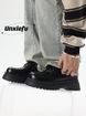 Ur Black Thick Sole Business Big round Head Height-Increasing Leather Shoes