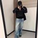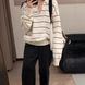 V-Neck Striped Color-Block Knitted Women's Lantern Sleeve Top Niche Design Sweater Loose Slimming Lazy Wool Sweater
