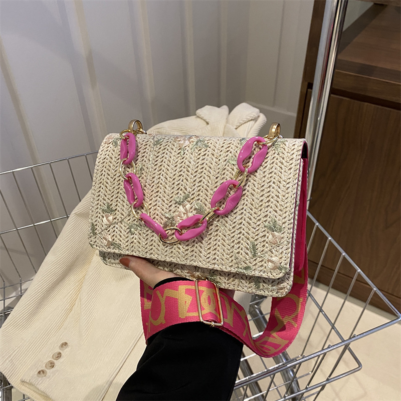 Gewebte Tasche 2024 trendiger neuer Trend, breiter Schultergurt, einzelne Schulter-Unterarmtasche, Pendlertasche für den Außenbereich, Tasche mit Kettengurt