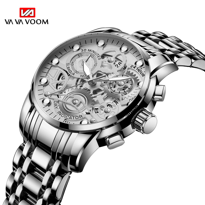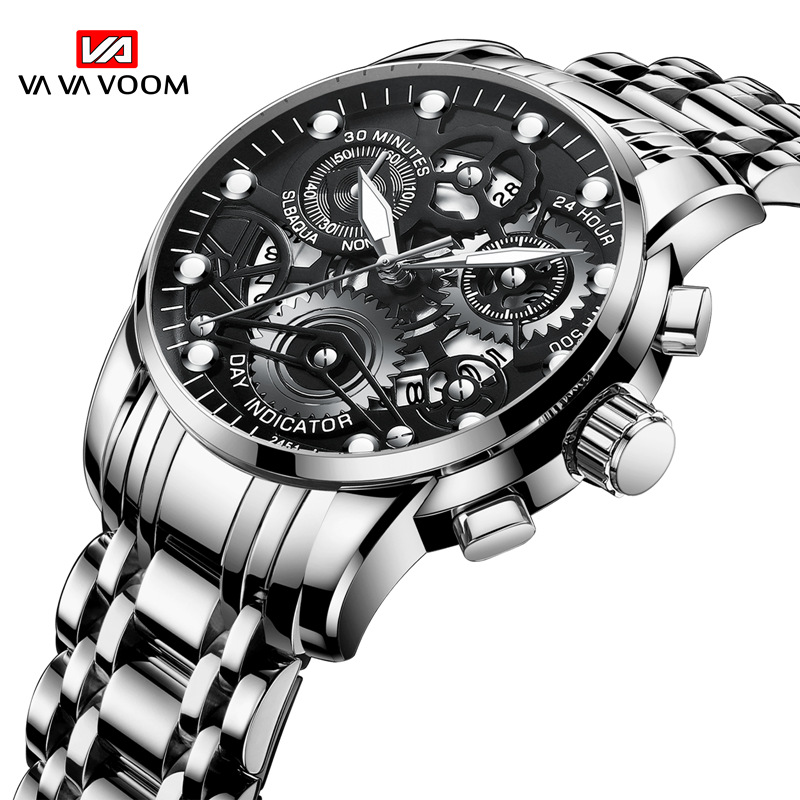 VA VA VOOM brand quartz movement hollowed out waterproof watch for men's fashion calendar watch for men
