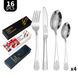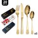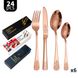 Verdicktes gemustertes Edelstahlmesser, Gabel und Löffel, Geschirr 430, doppelköpfiges gemustertes Messer, Gabel und Löffel, 24-teiliges Set