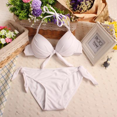 Solid Color Two-Piece Triangle Bikini Swimsuit Underwire Gathered Fashion Bikini Set for Women