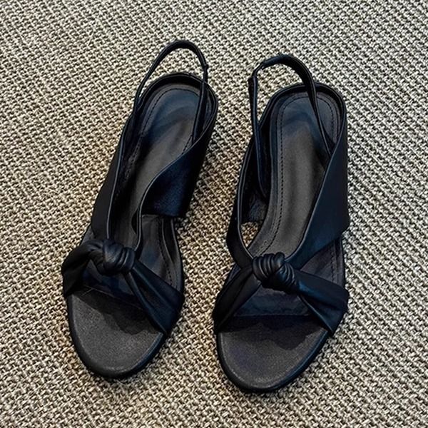 Vielseitige Sandalen aus echtem Leder im römischen Nischendesign mit schlichter offener Zehenpartie und gekreuzten Riemen und Keilabsatz für Damen