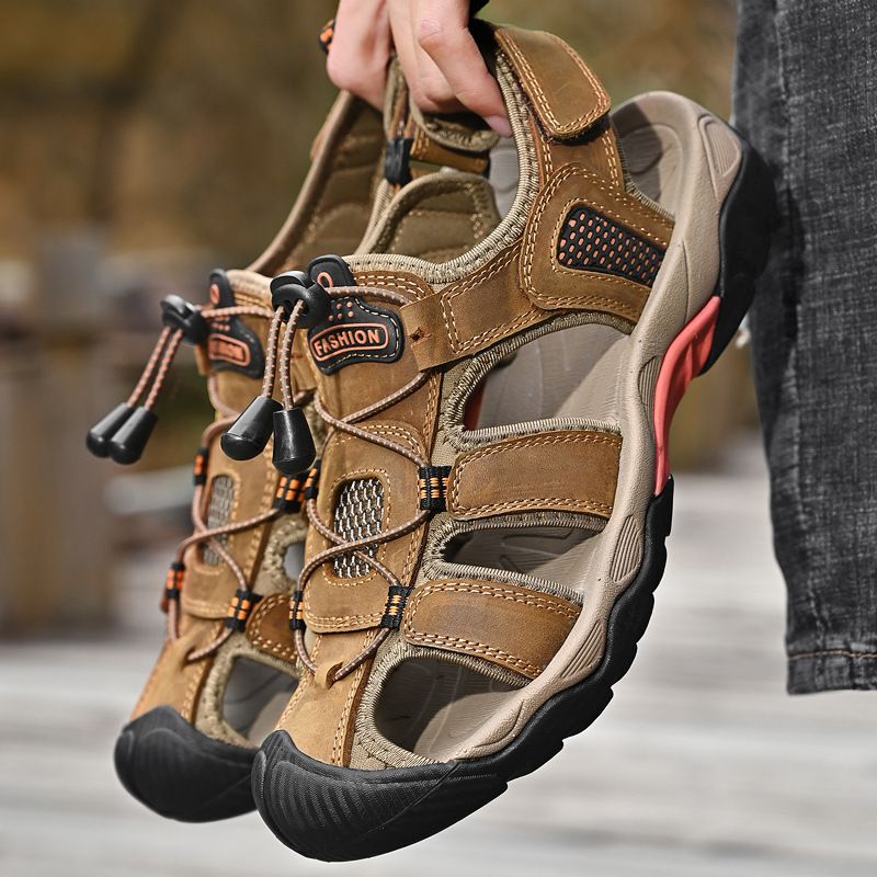 Vielseitige Sandalen für Herren, trendige Outdoor-Sportarten, Zehenkappen aus Leder, Freizeitschuhe, Hausschuhe, atmungsaktive Strandschuhe für Herren
