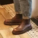 Vintage Herren dicke Plateau High Top Business Arbeitssicherheitsschuhe aus echtem Leder neue runde Zehen Slip-On Stiefeletten