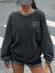 Vintage-Kapuzenpullover aus gewaschener Baumwolle für Damen mit Smiley-Print, lässiges Pullover-Sweatshirt, gemütliche Herbst- und Wintermode