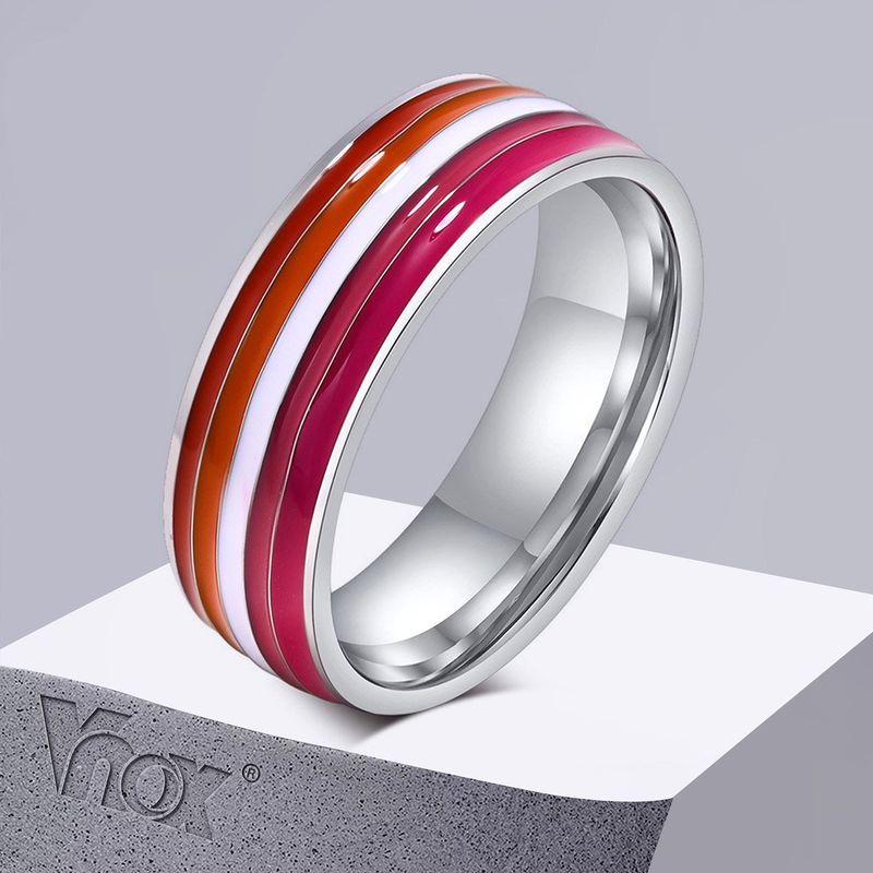 Vnox 8 mm Lesbenring für Frauen, Fingerring mit rot-weiß-orangefarbenen Linien, Schmuck für Stolz, Liebesversprechen