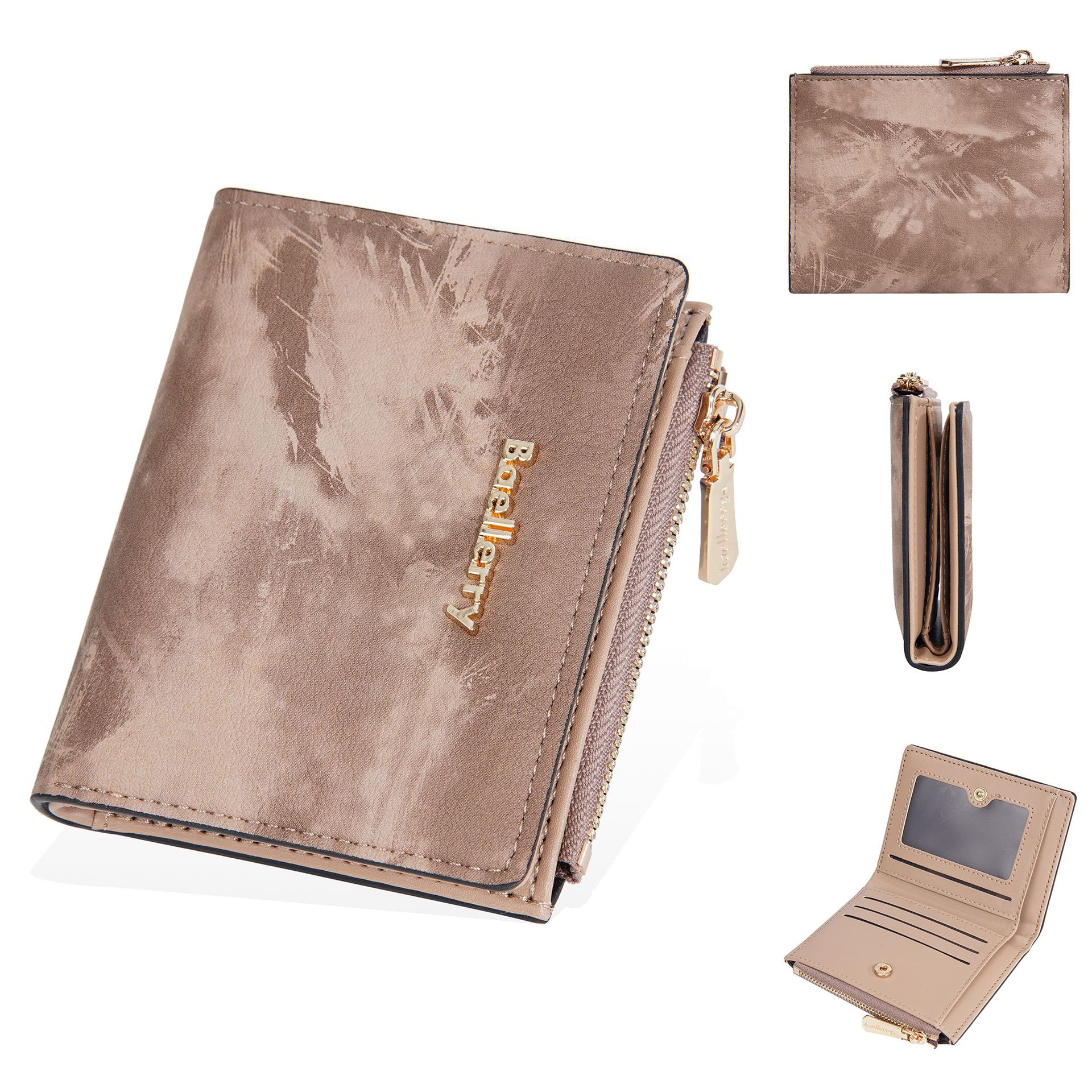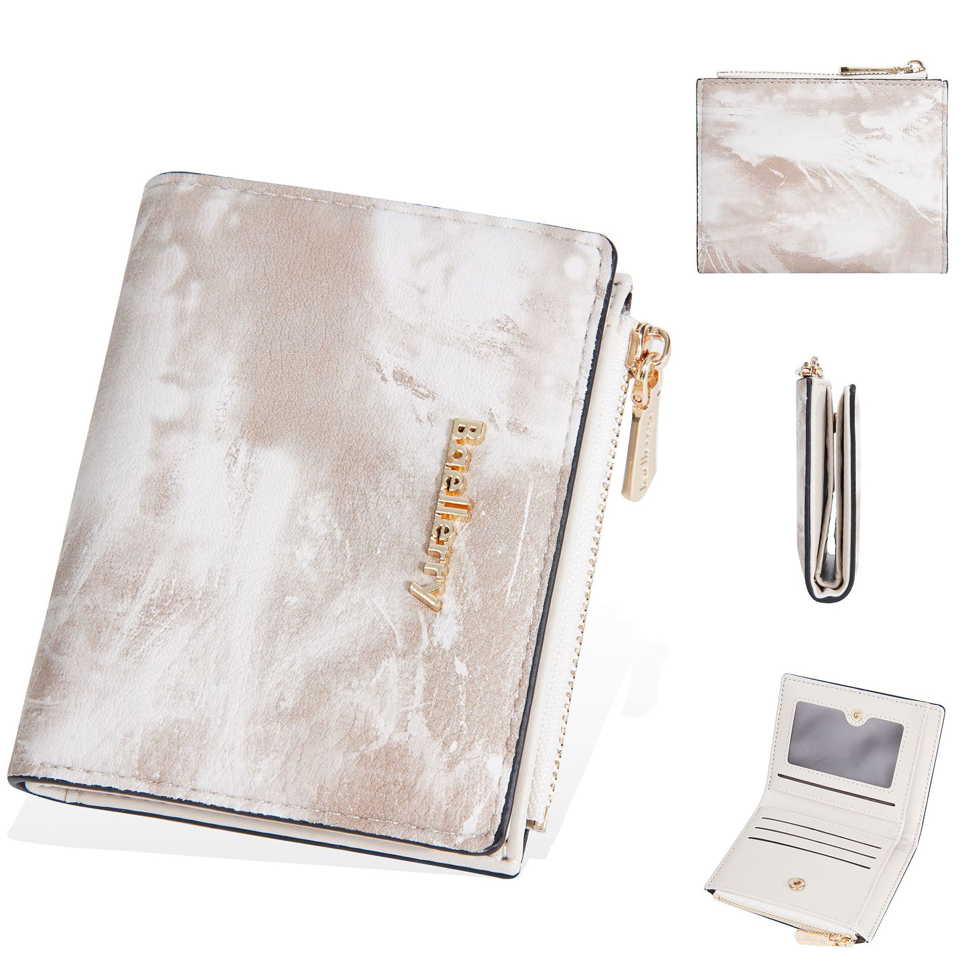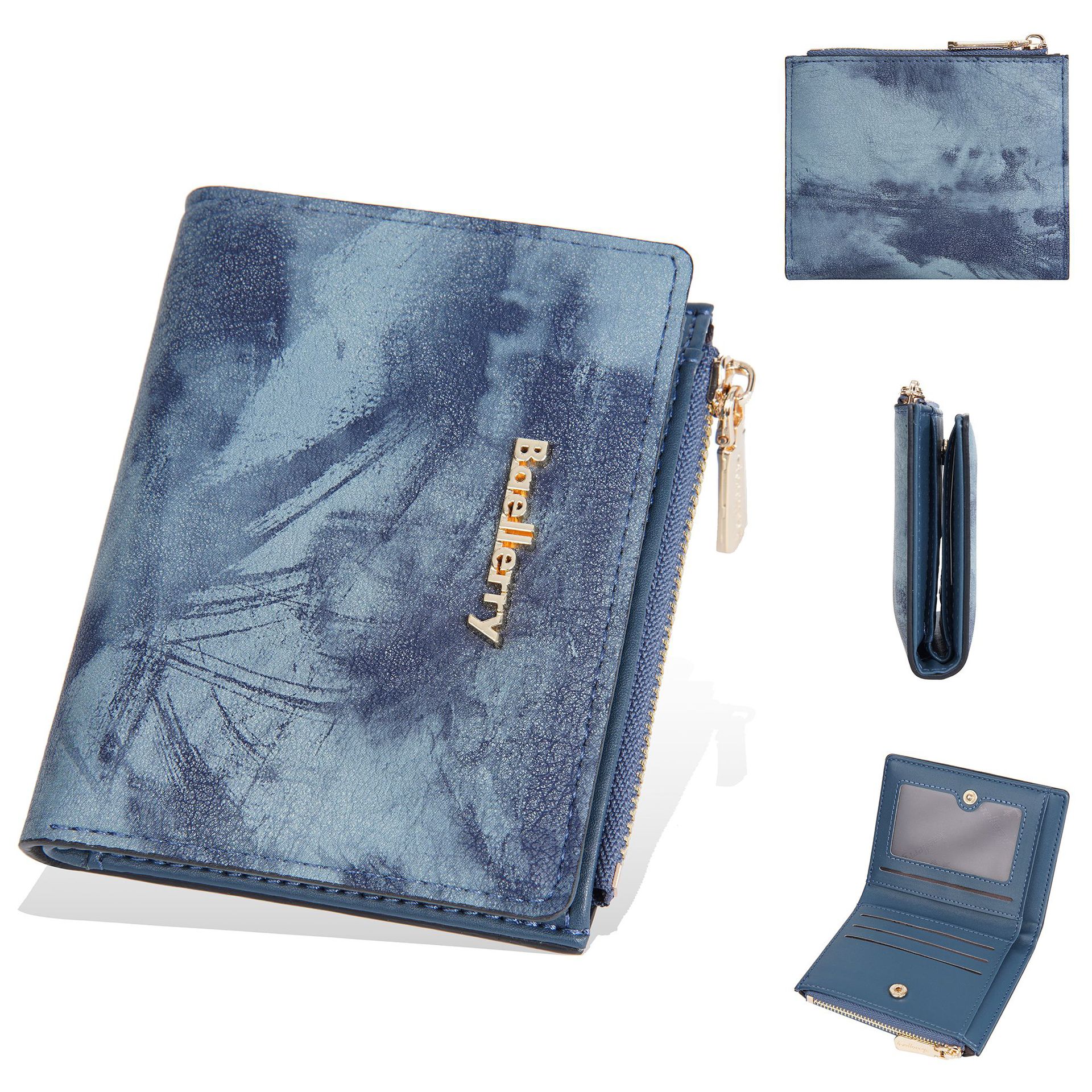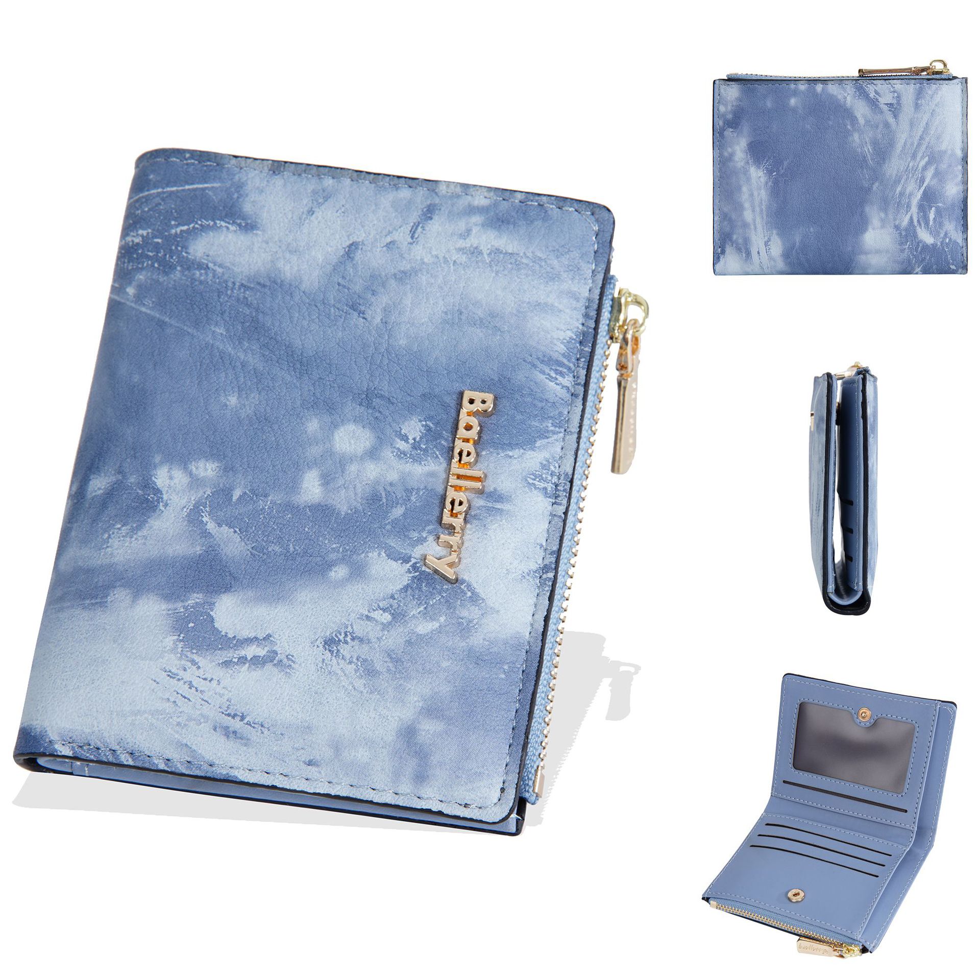 Geldbörse: Neue, kurze Geldbörse für Damen im Tintenmalerei-Stil, Münzfach für mehrere Karten, durchgehendes Geldscheinfach und Seitentaschen mit Reißverschluss für Münzen und Ringe.