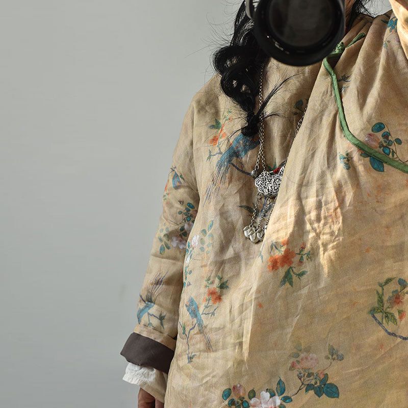 Walnuss/frühling original baumwolle und leinen damenbekleidung digitaldruck Ramie strickjacke schnalle baumwollgepolsterte kleidung künstlerische retro tee kleidung