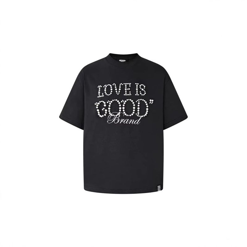 Wang Sulong Old White Same Style GOODBRAND LOVE IS GOOD Pearl Slogan Short Sleeve Unisex Couple Short Sleeve