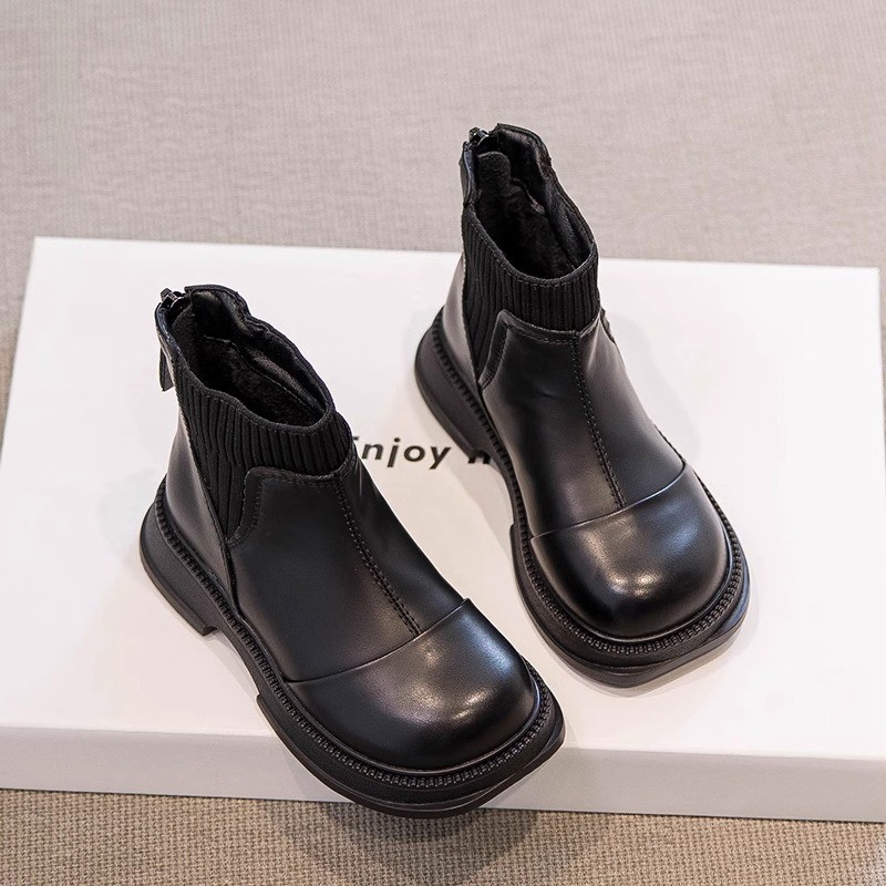 Girls' Boots with Velvet Winter 2024 New Mid to Large Children's Short Boots, Children's Warm Boots, Girls' Martin Boots