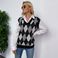 Warme Strickweste mit V-Ausschnitt und Karomuster für Damen
