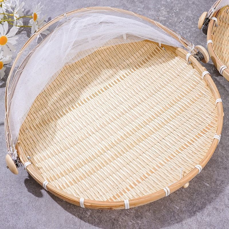 【24-Hour Dispatch】Bamboo Weaving Drying Handmade Fly-Proof Sieve Net Cover Round Dustpan Household Insect-Proof Products Steamed Bun Food Bamboo Basket Storage