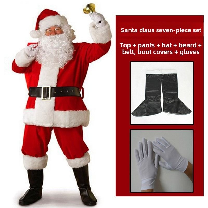 Weihnachtsmann-Performance-Kostüm, Weihnachtsmann-Komplettkostüm, Erwachsene – Weihnachtsmann-Siebenteiliges Set