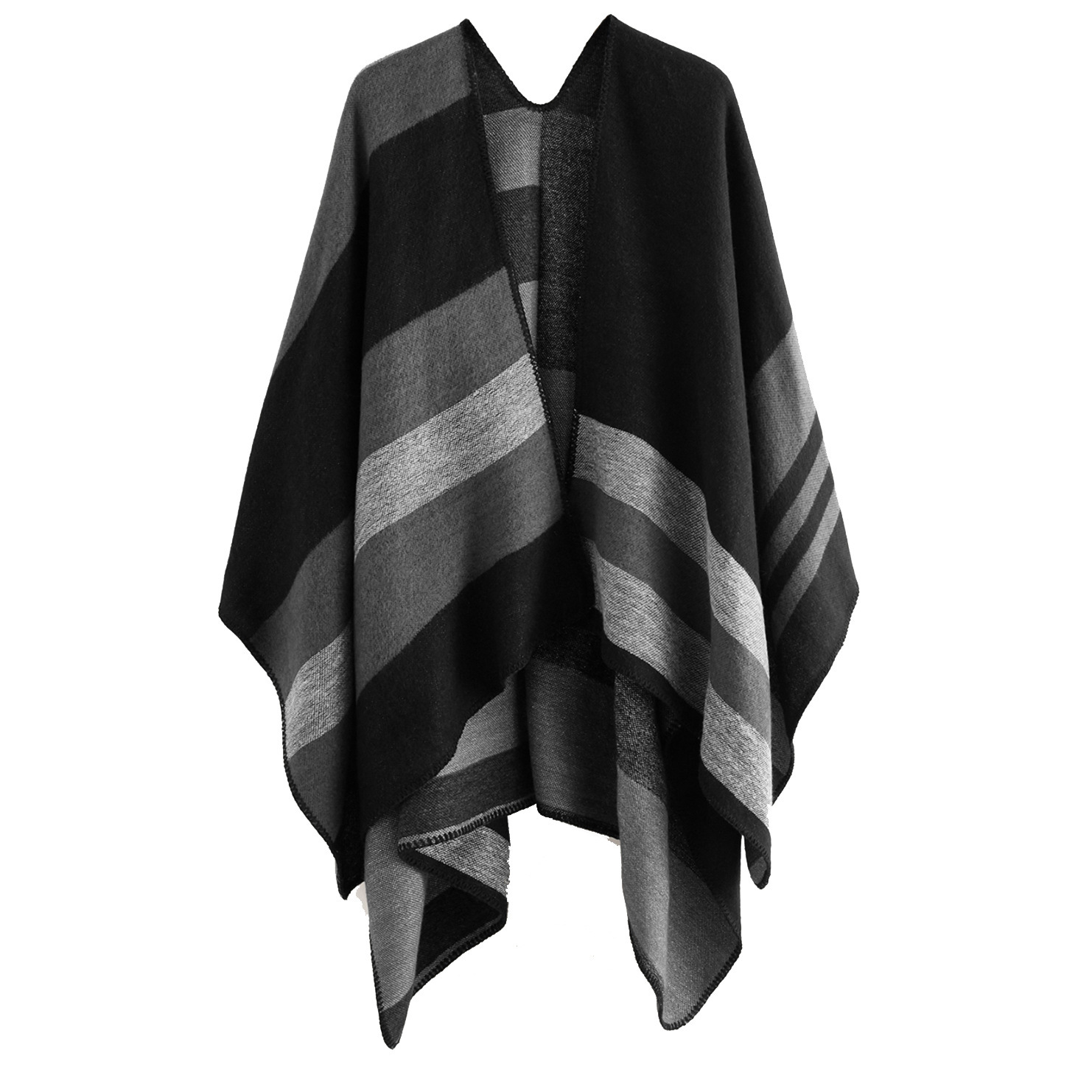 Wind imitation cashmere tie dyed black gray double-sided shawl autumn and winter split scarf minimalist cloak for warmth and thickened shawl