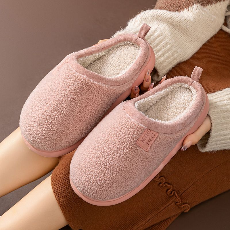 Winter-Hausschuhe aus Lammwolle für Damen, für drinnen und draußen, rutschfest, mit Fleece gefüttert, warm, flauschig, einfache Baumwolle für Herren
