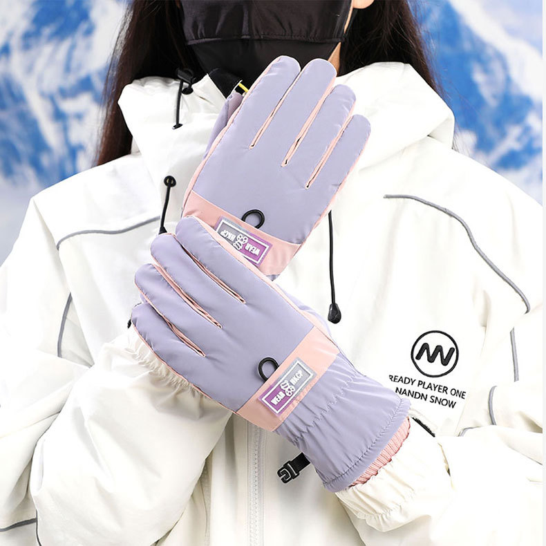 Winter men's and women's skiing waterproof and velvet wear-resistant K2 women's cycling cute windproof and cold proof split finger skiing warm gloves