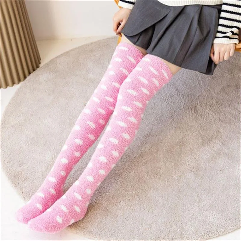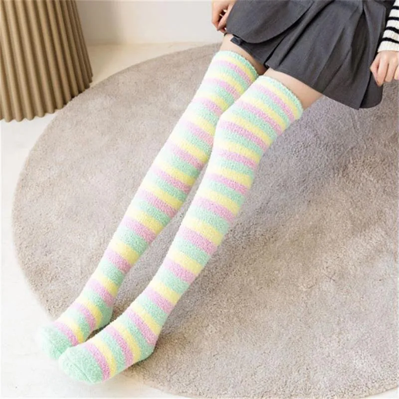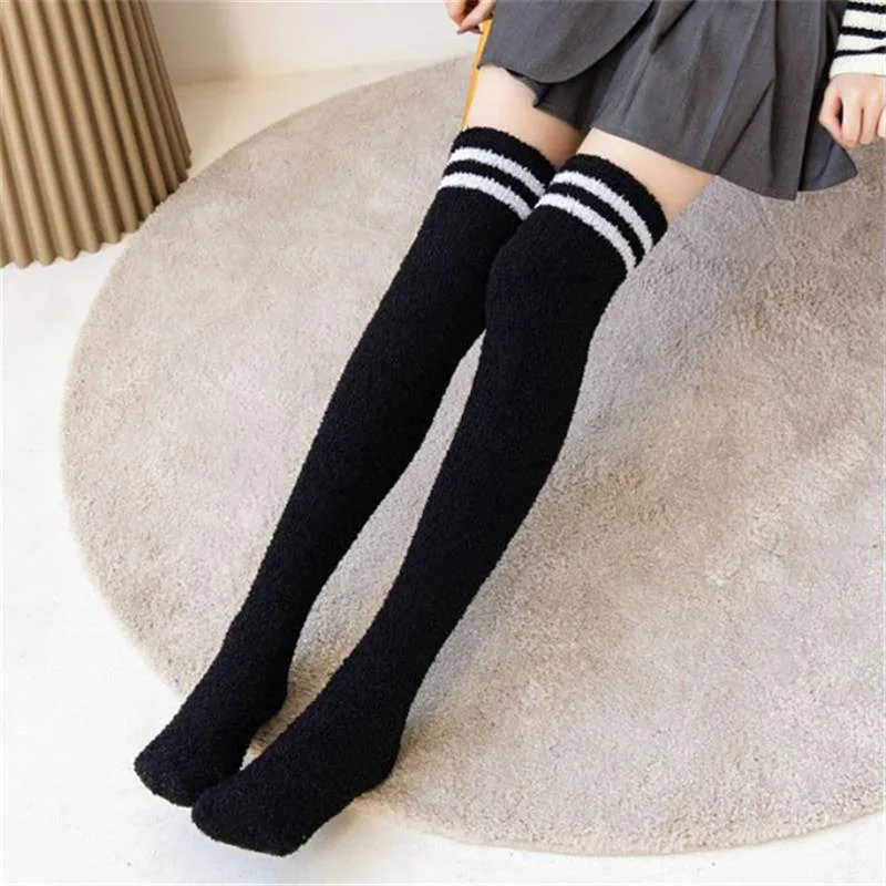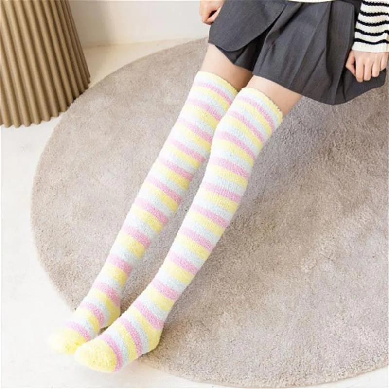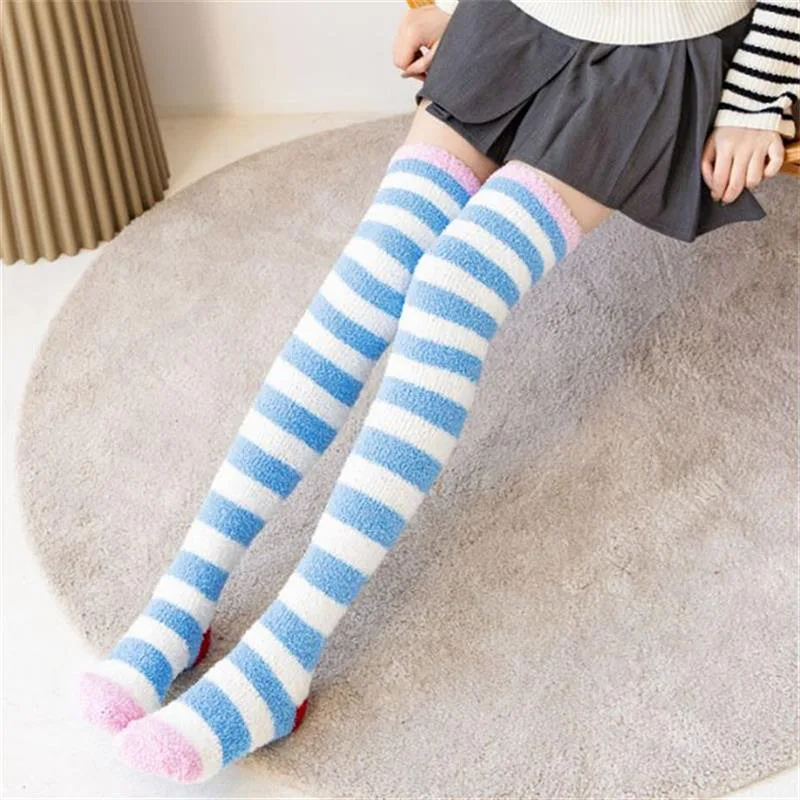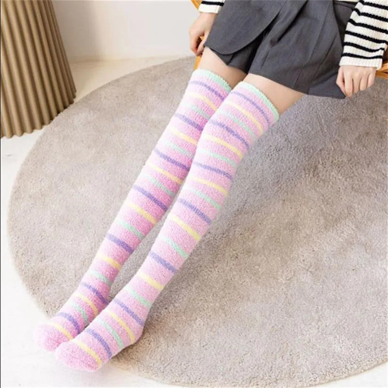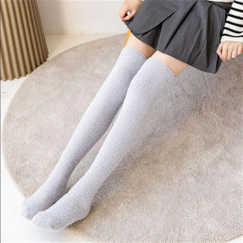 Winter Knie Scoks verdicken warme pelzige Beinwärmer Frauen Oberschenkel hohe Socken Korallen Fleece Strümpfe