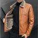 Wintermode, Wärme, verdickte Lederjacke, Revers, solides Reißverschluss-Design, Übergröße, Herren-Lederjacke, Bomber-Fleece-Mantel