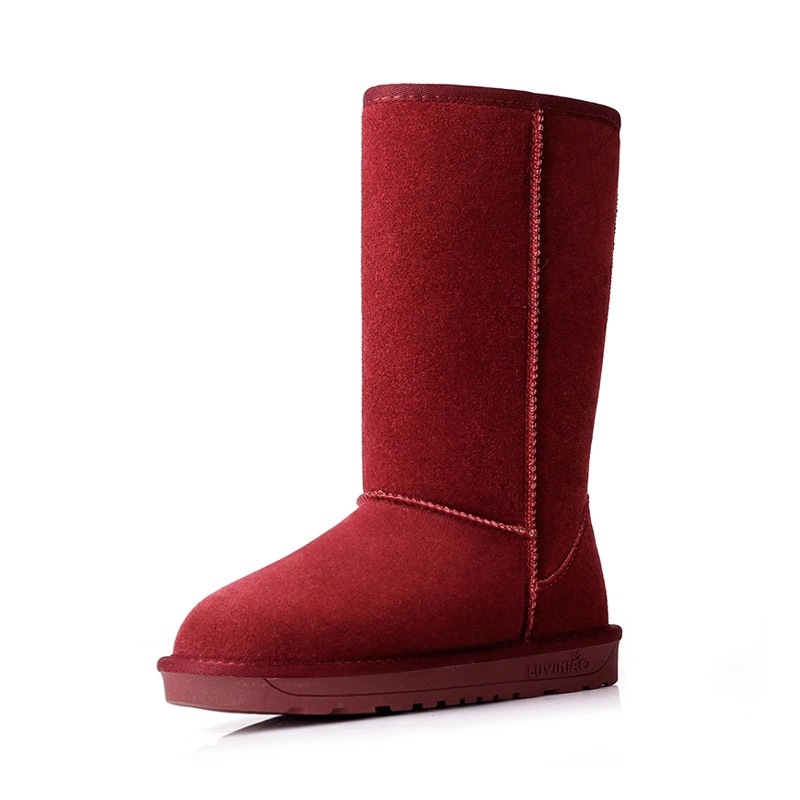 2023 Snow Boots Women's Autumn and Winter New Cowhide Snow Cotton High Barrel Flat Bottom Boots Children's Shoes