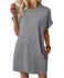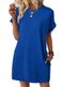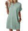 Lässiges Damen-A-Linien-Kleid mit Rundhalsausschnitt und kurzen Ärmeln und Tasche – weiche Polyestermischung, bequem und stilvoll für den Alltag (erhältlich in S-5XL)