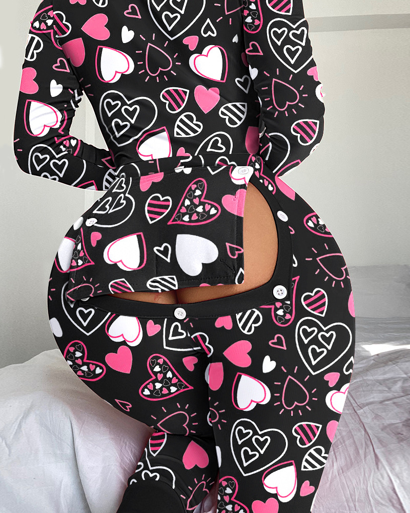 Damenbekleidung – Jumpsuit mit bedrucktem Pit-Stripe-Muster und Liebesmotiv von Independent Station