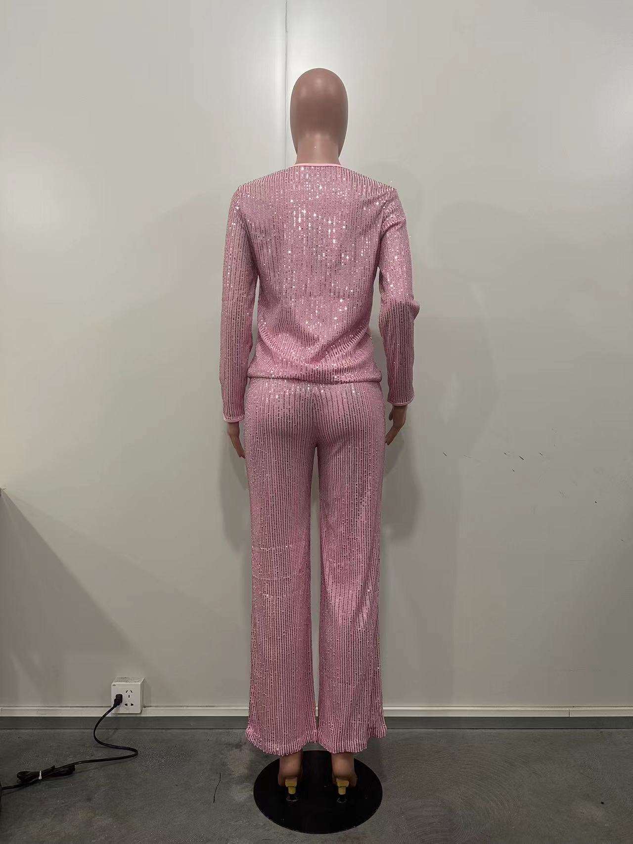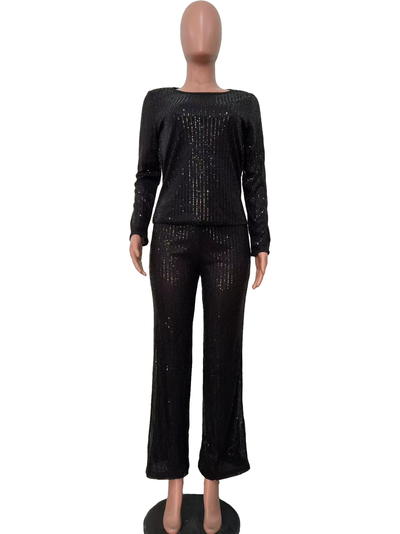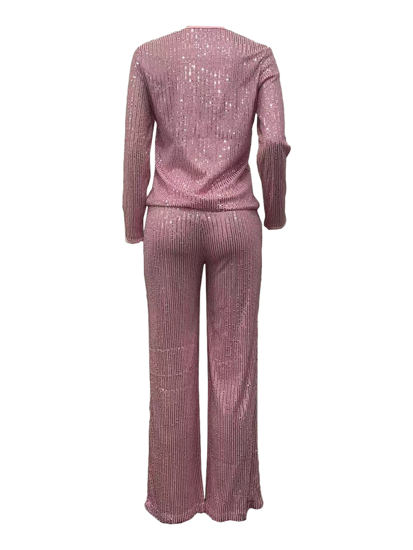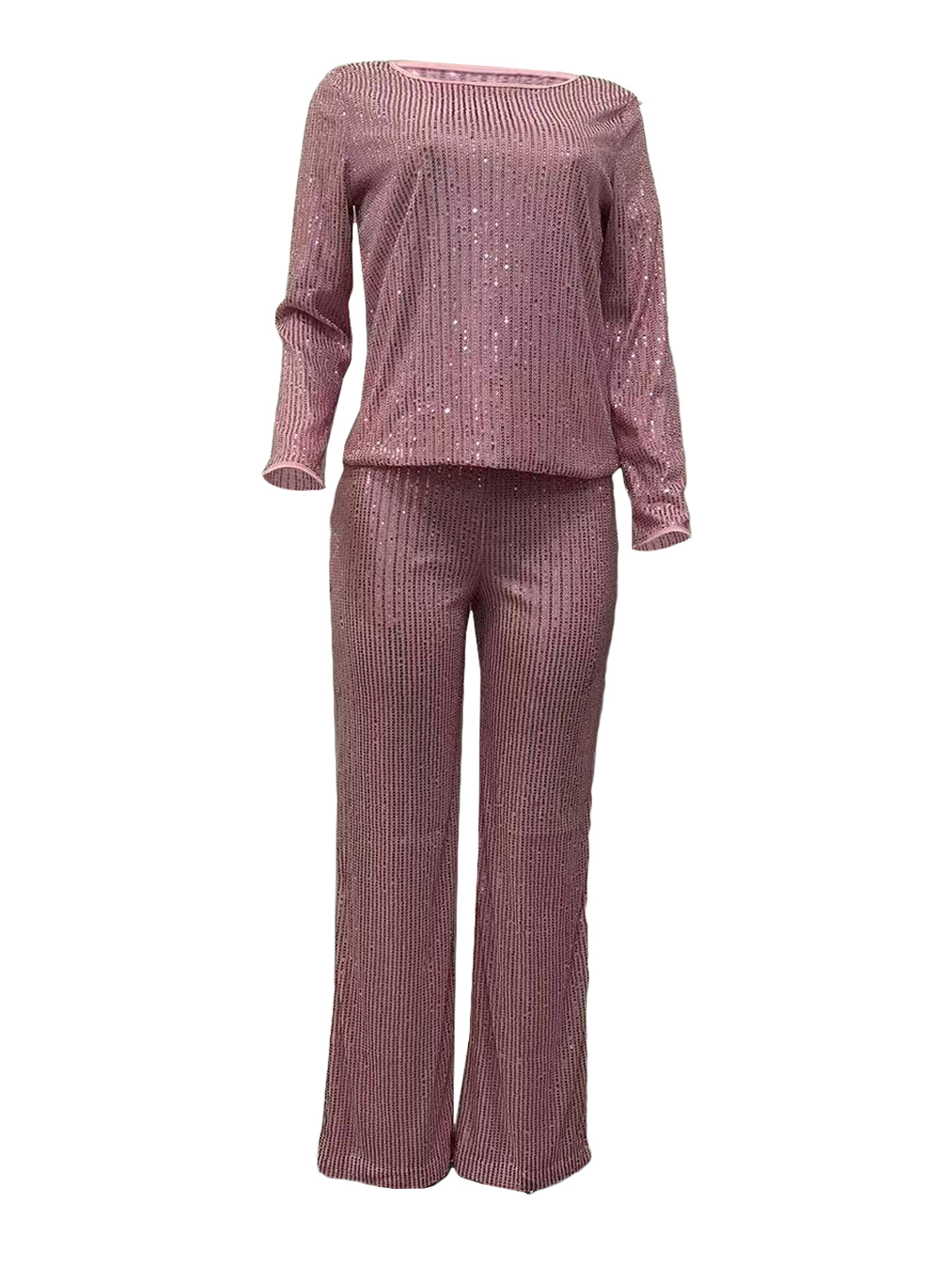 Damenbekleidung neues zweiteiliges Set mit Pailletten in Volltonfarbe und langen Ärmeln