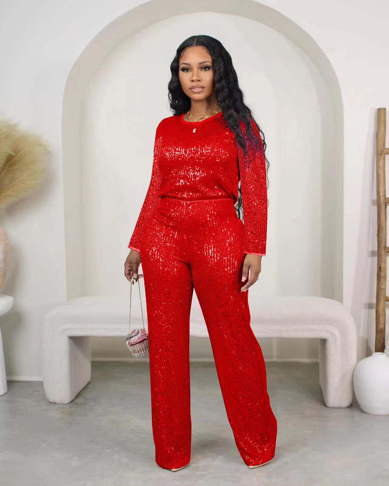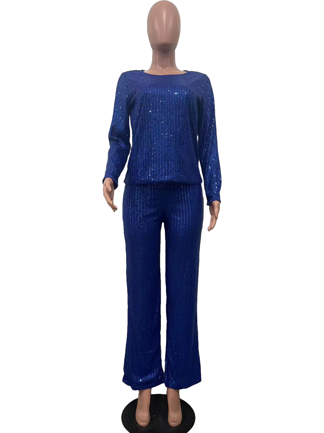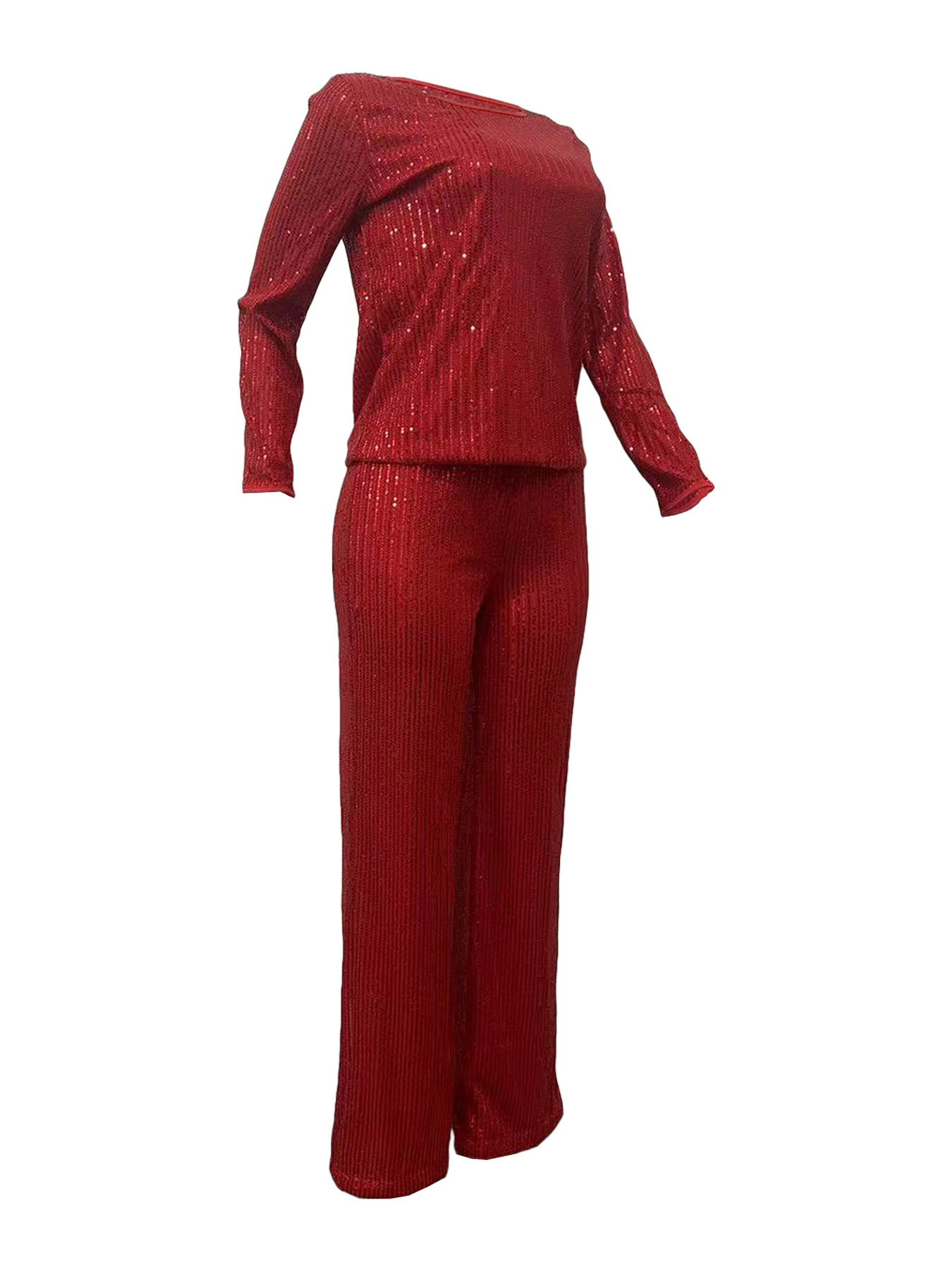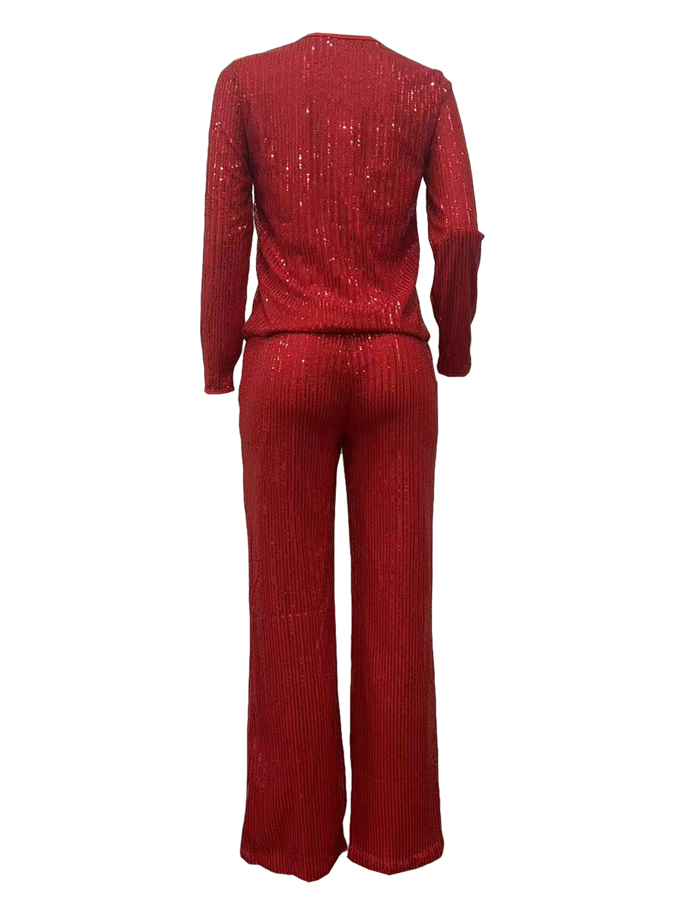 Damenbekleidung neues zweiteiliges Set mit Pailletten in Volltonfarbe und langen Ärmeln