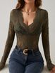 Damenbekleidung Neue sexy einlagige Bluse mit floraler Spitze in Fächerform mit dekorativer Bodenbildung für Damen