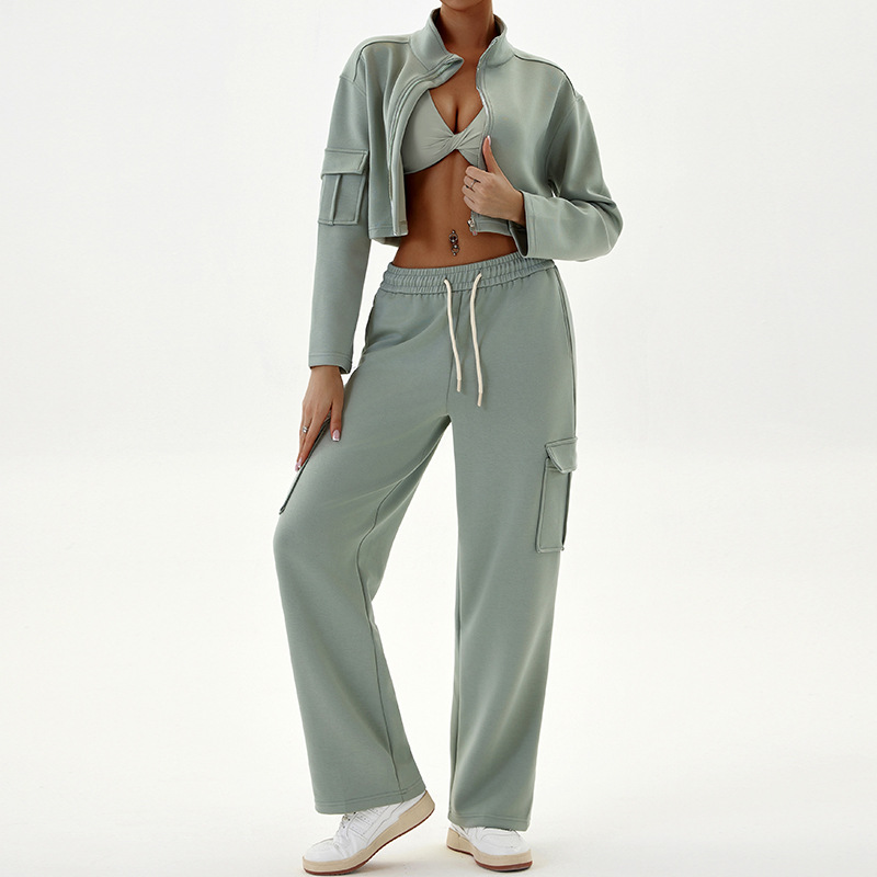 Damenbekleidung Arbeitskleidung Freizeitsportanzüge lockerer Reißverschluss Jogging-Yoga-Kleidung