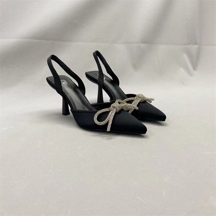Women's shoes Large pointed back hollow sandals Rhinestone bow high heeled Muller shoes