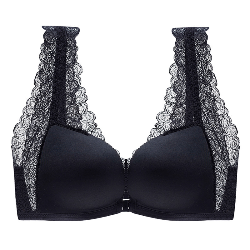 Damen-BH mit Vorderverschluss, Spitze, Push-up, verstellbar, nahtlos, kabellos, lässt kleine Brüste größer wirken und reduziert seitliches Brustgewebe.