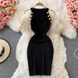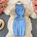 Damen Rundhals Ärmelloses Strick Neckholder Off-Shoulder Kleid Sexy Hüftbetontes Kurzrockkleid