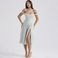 Sexy Strapsrock für Damen im Fischgrätenmuster, schmale Passform, rückenfreier Schlitz, mittellanger Rock, Blumenkleid, Dopamin-Outfit